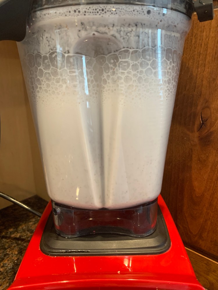 Add the water and blend for 3 minutes on medium high or until the almonds are very fine and barely visible, this is when you add the salt and optional ingredients.